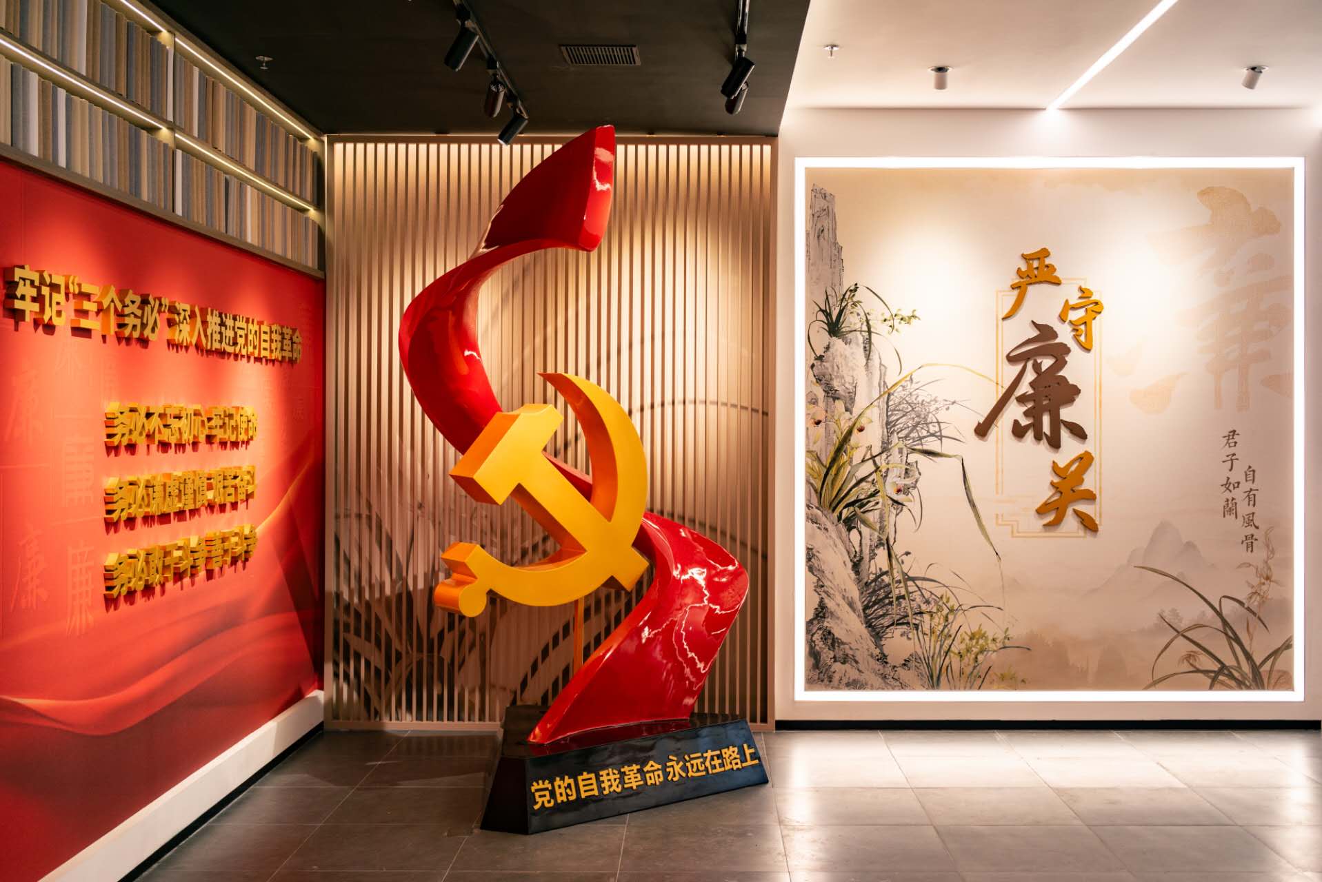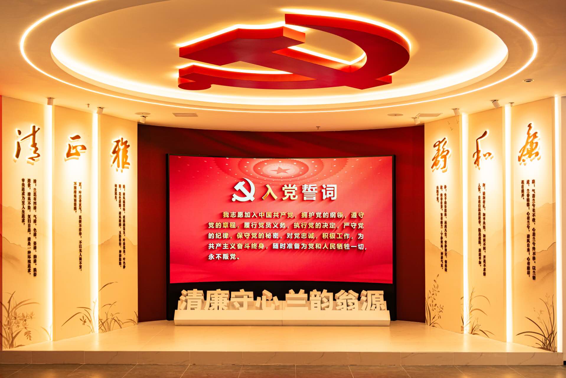 正面展厅设有廉洁政本、廉政沿革、兰韵清风等三个展区,旨在以党的理论知识和党纪法规夯实思想根基,以兰花君子文化厚植廉洁底色,引导广大党员干部坚定理想信念,增强廉洁从政、廉洁用权、廉洁修身、廉洁齐家的思想自觉,涵养克己奉公、清廉自守的精神境界。