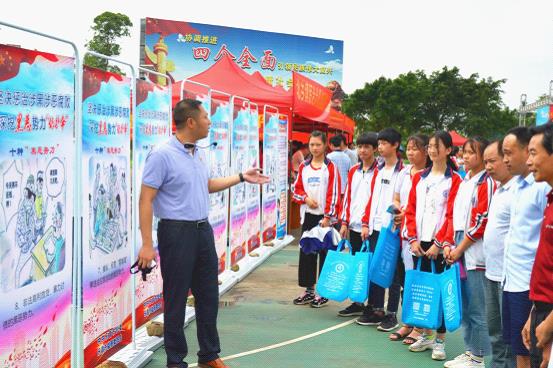 这是该镇纪委整合镇内资源,联合镇扫黑办等部门在墟日举办的一场扫黑除恶专项斗争大型宣传活动现场,活动吸引了上千名群众驻足。工作人员为往来群众讲解扫黑除恶和惩腐打“伞”相关知识,宣传信访举报途径和步骤,并发放扫黑除恶知识小册子、笔和环保袋等宣传物品,此次活动共发放扫黑除恶宣传物品1000余份。