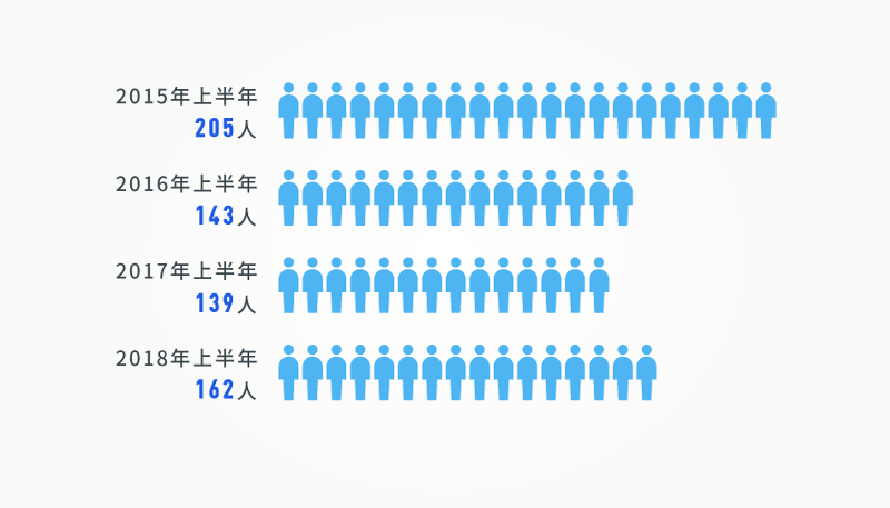 2015年以来,上半年厅局级干部落马数量走势图