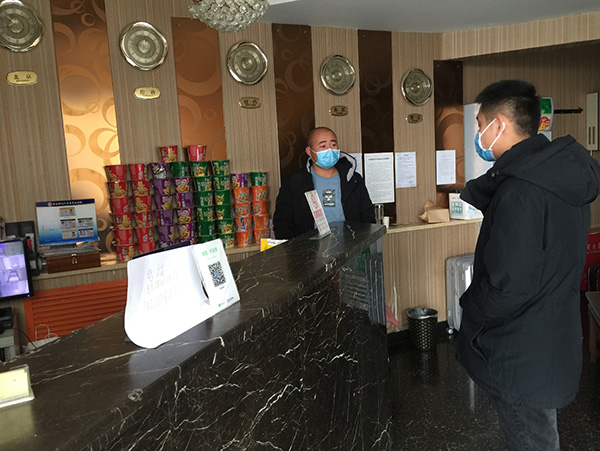 北京市朝阳区潘家园街道松榆西里社区纪委检查组到辖区酒店、餐馆等人员密集场所,进行疫情防控相关工作排查(徐海霞)