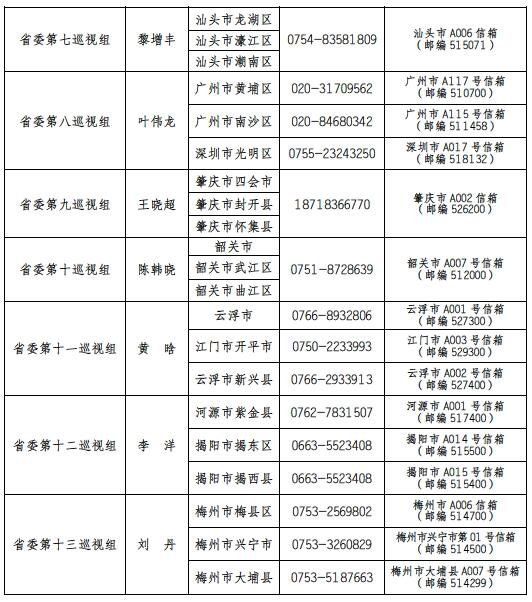 据了解,本轮巡视时间为9月底至12月中旬。巡视期间设专门值班电话和专门邮政信箱,主要受理反映被巡视地区领导班子及其成员、下一级党组织领导班子主要负责人和重要岗位领导干部问题的来信来电来访。