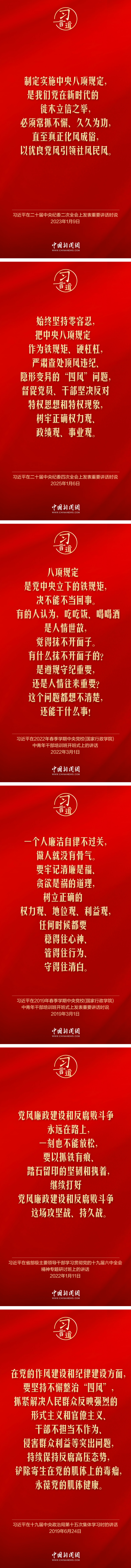 党中央决定,自2025年全国两会后至7月在全党开展深入贯彻中央八项规定精神学习教育。党的作风就是党的形象,关系人心向背,决定党和国家事业成败。习近平总书记高度重视作风建设,就贯彻落实中央八项规定精神、深化作风建设作出一系列重要论述——