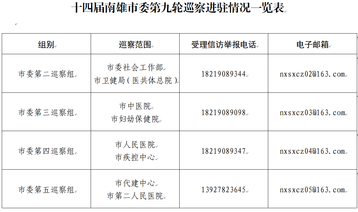 根据南雄市委巡察工作统一部署,近日,十四届市委第九轮巡察完成进驻工作。市委巡察组将对市委社工部、市卫健局(医共体总院)、市代建中心、市人民医院、市中医院、市第二人民医院、市疾病预防控制中心、市妇幼保健院等8个单位党组织开展常规巡察。